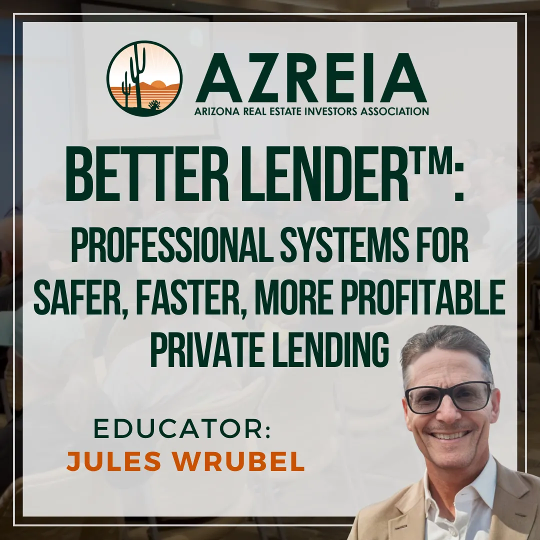In AZREIA’s newest class, Raising Private Capital for Real Estate Investing, you’ll learn directly from AZREIA’s resident expert Stuart Gethner a seasoned investor with over $25 million in real estate transactions. Stuart will show you how everyday investors, even with full-time jobs and zero experience, are securing private lenders and closing deals using a straightforward and repeatable system. If you’ve got integrity, a plan, and the courage to ask the money is out there. This class will show you how to get it.